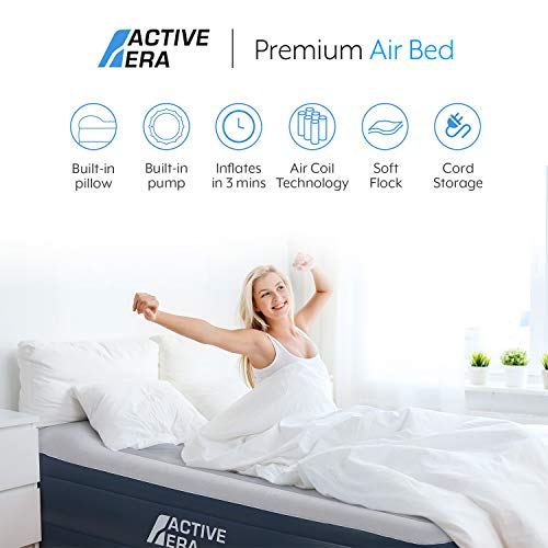 Título: Active Era Colchón Hinchable Doble válvula eléctrica integrada, levantada y con cojín Integrados, Dimensiones de 203 x 152 x 48 cm